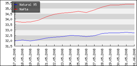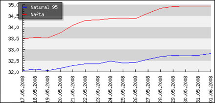 02.06.08 Natural 95 v CZK Zmena Nafta v CZK Zmena