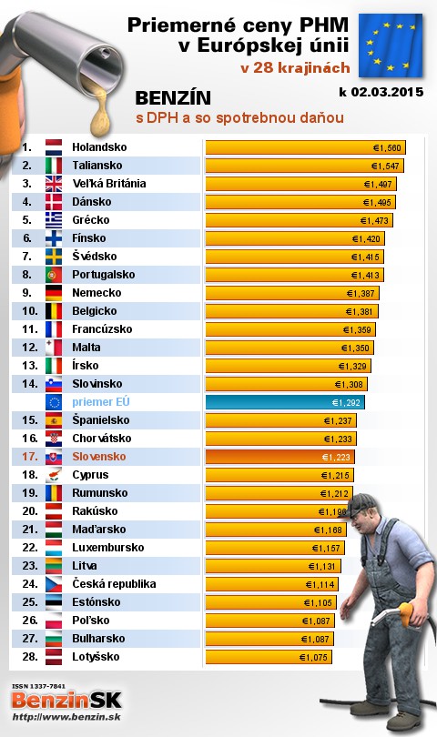 sme mali na Slovensku, kde motoristi v priemere zaplatili 0,449 EUR za 1L.