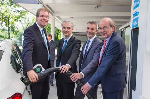 zľava: Dr. Andreas Opfermann (The Linde Group), Guillaume Larroque (TOTAL), Matthias Klietz (BMW Group), Dr. Veit Steinle (Bundesministerium für Verkehr und digitale Infrastruktur).