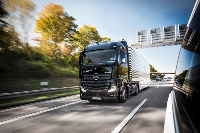 Prvý automatizovane jazdiaci sériovo vyrábaný nákladný automobil Mercedes-Benz Actros (pohon motorom 12,8-litra OM 471) so systémom Highway Pilot už jazdí po diaľnici A8 medzi obcou Denkendorf a letiskom Stuttgart.