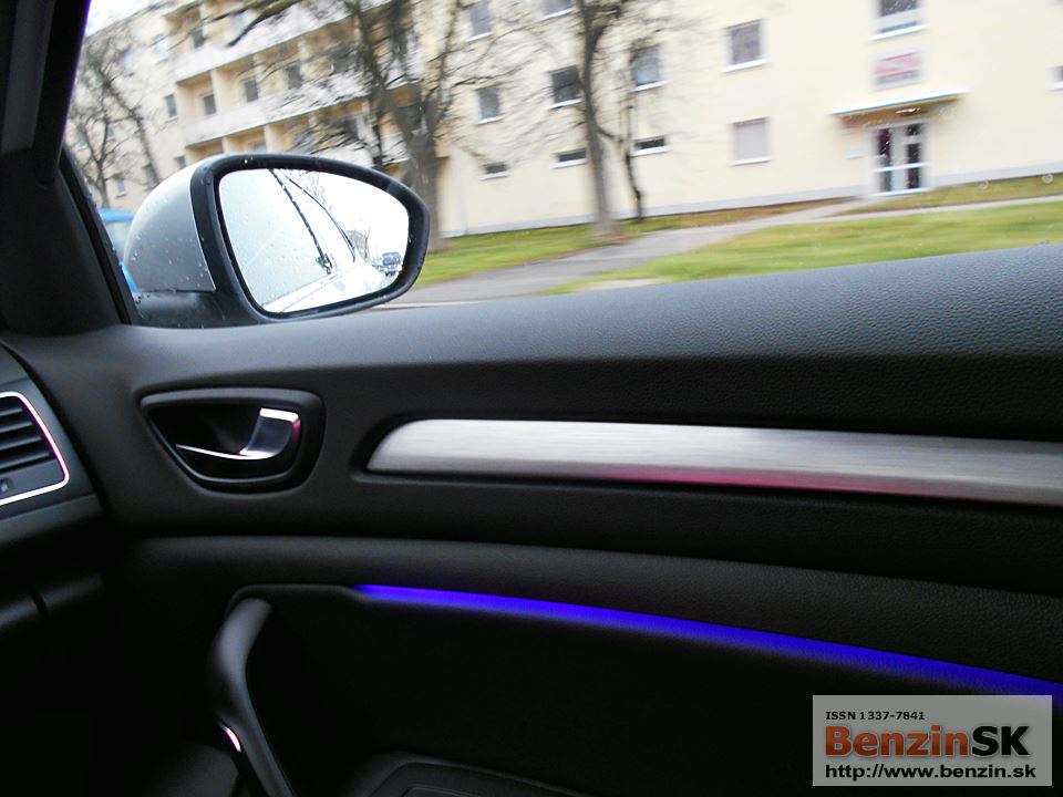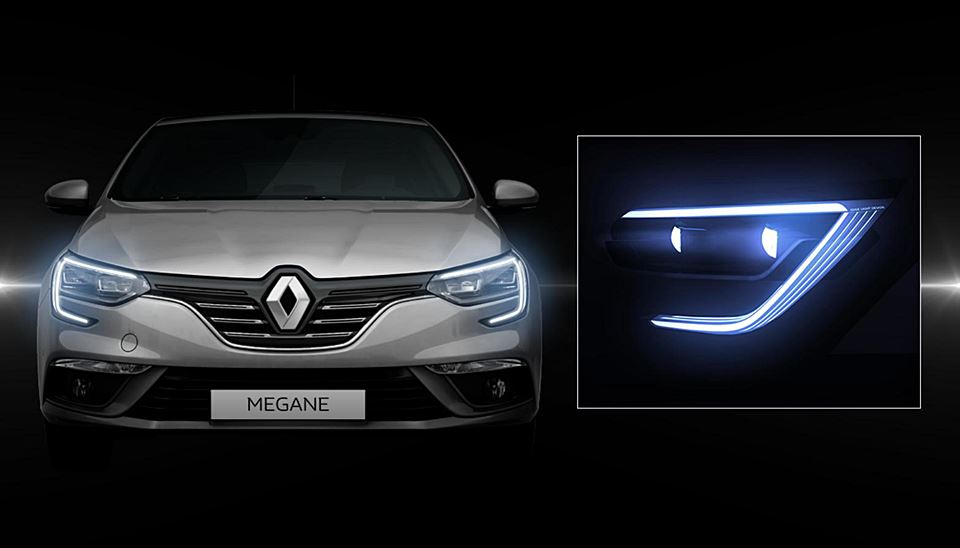 - predné svetlomety v tvare písmena „C“ tvoria LED diódy s 3D efektom. Vyššie verzie nového Mégane sú vybavené plnými LED svetlometmi (LED Pure Vision) s automatickým prepínaním medzi stretávacími a diaľkovými svetlami.