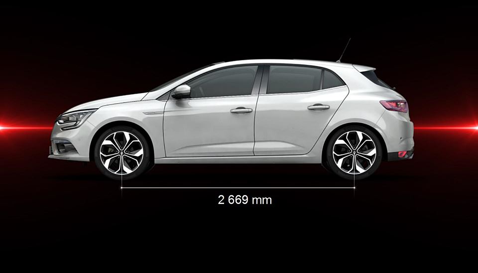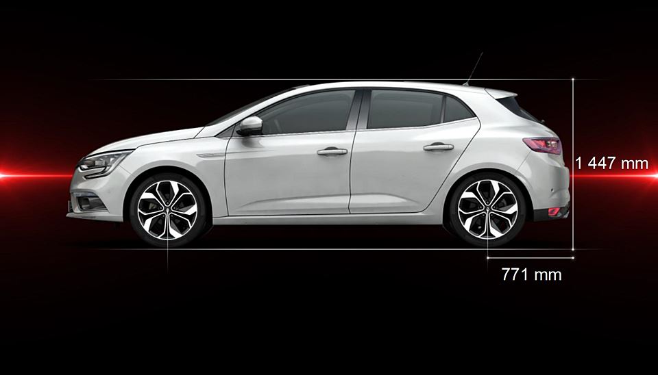 Široké a mohutné bočné línie nového Mégane vyjadrujú zmyselnosť, ktorá je typickým znakom dizajnovej identity modelov Renault. Dolnú časť karosérie tvoria čisté línie, ktoré sa smerom k prednej časti približujú a zvýrazňujú dynamický vzhľad. Medzera medzi pneumatikami a blatníkmi sa zmenšila, čím podčiarkuje dojem kvality nového Mégane. Upravená geometria prednej nápravy a väčší uhol tlmičov zmenšili túto medzeru o 25 až 30 mm.