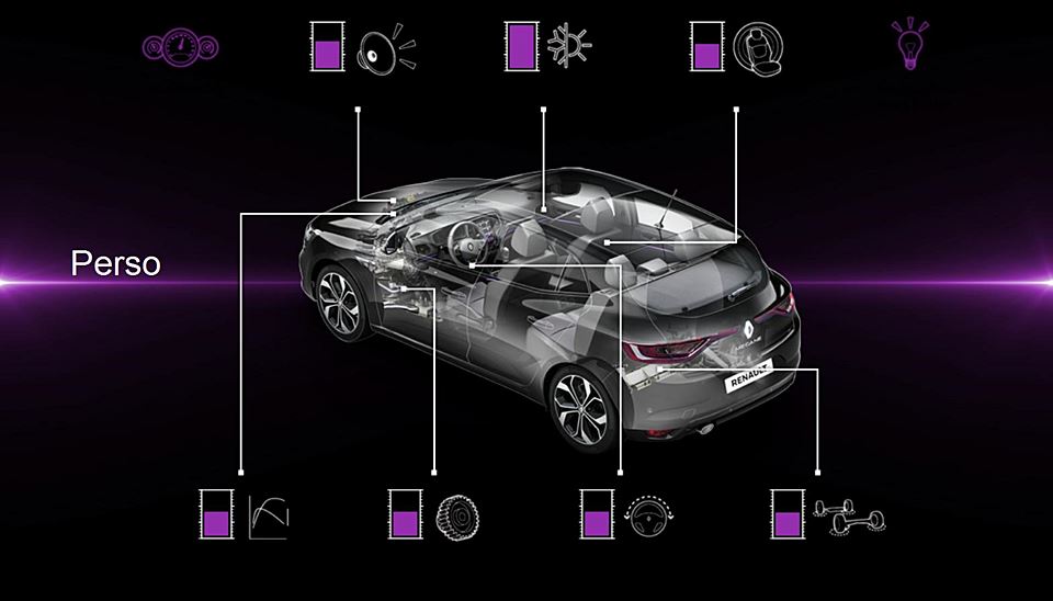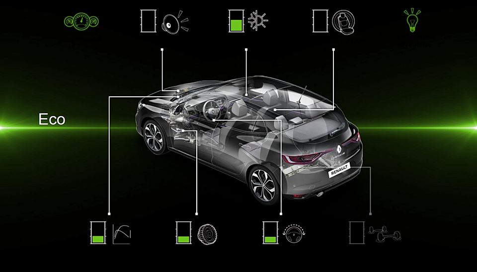 Nový Mégane ponúka najnovšie technológie jazdných asistentov (ADAS), ktoré sa nachádzajú aj v novom Espace a modeli Talisman. Tieto systémy sú prístupné prostredníctvom tabletu R-Link 2 a ponúkajú nasledovné funkcie: