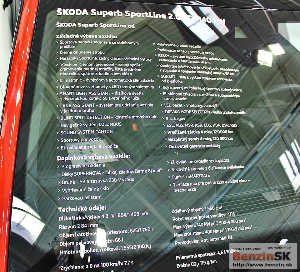 ŠKODA Superb SportLine nadchne športovými dizajnovými prvkami v exteriéri aj v interiéri. Cena výbavou nabitej novinky začína od 31 590 €. Superb SportLine vo verzii Combi bude k dispozícii s príplatkom iba 1 200 € vrátane strešného nosiča. Novinka bude v ponuke s kompletnou motorovou paletou radu Superb okrem najslabšieho benzínového a dieselového agregátu. Objednávky začnú autorizovaní partneri ŠKODA AUTO na Slovensku prijímať už v septembri tohto roku.