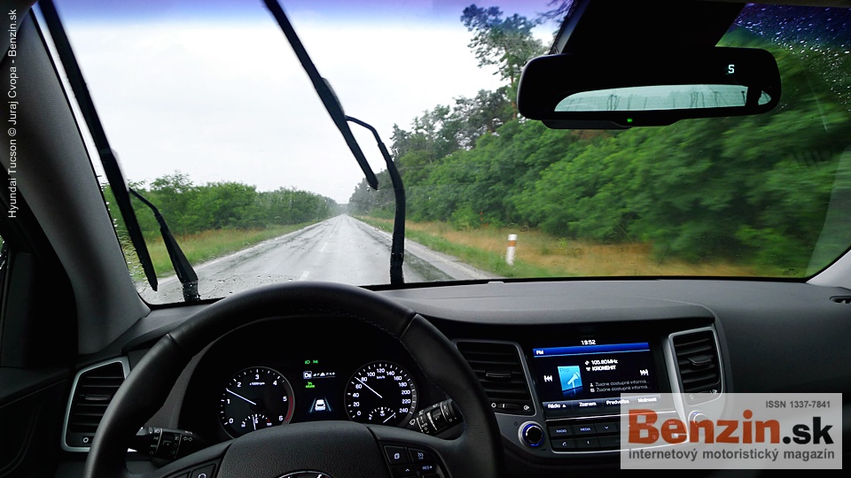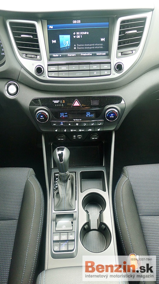 ![]() Stredová konzola nesie okrem ovládača prevodovky aj fukčné voľby ako nastavenie módu posilovača riadenia (s citeľným vytuhnutím volantu), hlasitosť parkovacích senzorov, deaktiváciu automatického vypínania motora (škoda, že sa nedá aktivovať na trvalo) a asistent zjazdu z prudkého kopca (funguje dobre, len sa obávam o výdrž bŕzd). Poteší tu aj miesto na dva poháre, či fľašky a v zadnej časti široká lakťová opierka aj na dva lakte s hlbokým odkladacím priestorom. Čo sa spolujazdca týka, posed v poriadku, aj keď si musí vystačiť s úplne základnou nastaviteľnosťou. Pred seba dostal skutočne neveľkú odkladaciu schránku, no chladenú. ![]()