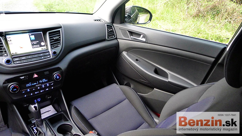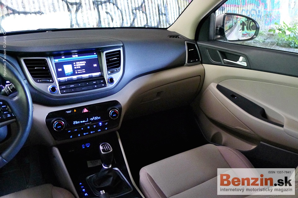 Neutrálne tvary palubnej dosky oživujú rôznorodé povrchy. Strieborné lemovanie výduchov okolo infotainmentu, pod ním konzola s komfortnými funkciami a náznakom čierneho klavírneho laku, miestami mäkčený plast, najmä pred spolujazdcom.