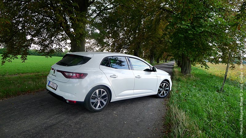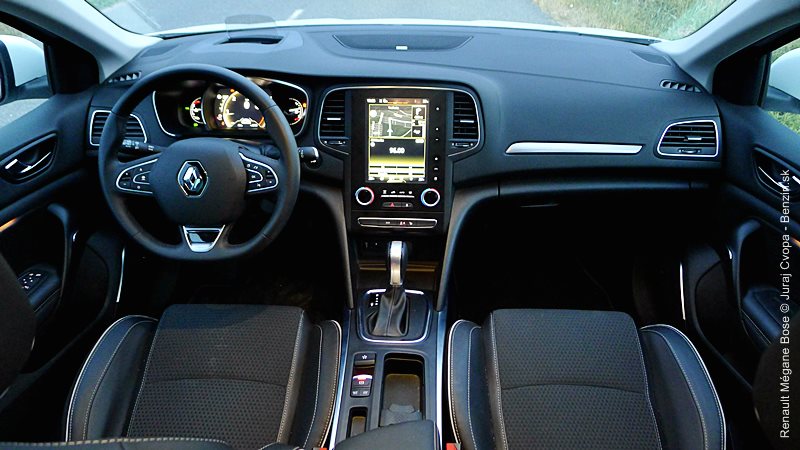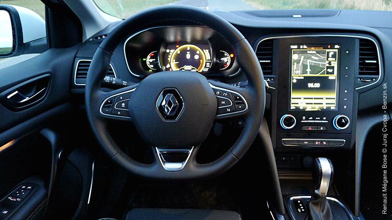 Karoséria prináša novinky v osvetlení, kde sa inšpiruje fotografickým umením a najnovšími LED technológiami, ponúka svaly v kombinácii nízkou a širokou siletou a pôsobí vyvážene. Nevhodou je vysoká nakladacia hrana batožinového priestoru. V interiéri dominuje tablet so širokými fukčnými kompetenciami, ktoré na jednej strane narúša koncentráciu na jazdu, na strane druhej prináša mnohé „extras“, z ktorých cítiť prepracovanosť a bohatosť výbavy, ako aj dotyk mozgov, ktoré si splnili úlohu posunúť Mégane pred prúd mainstreamu triedy. Na testovanej motorizácii (a prevdovke) niet výtky, snáď len treba zvážiť početnosť krátkych jázd počas užívania auta.