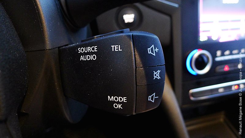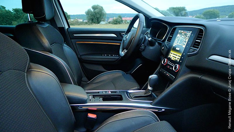 Mégane je veľmi tiché vozidlo a to aj vďaka izoláciám v dolnej časti dverí, ale aj hrubším oknám a akusticky optimalizovanému čelnému oknu. Toto stíšenie vytvára symbiózu s audio systémom BOSE. Osem reproduktorov a subwoofer v mieste rezervného kolesa dokáže vytvoriť veľmi pozdvihujúcu atmosféru pri čistej hre obľúbeých skladieb.