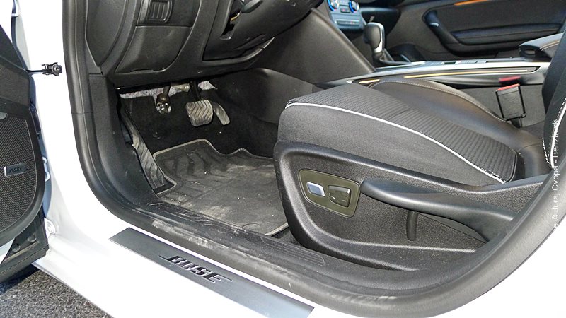 Čo sa týka posedu, je v poriadku. Pre krátkorukých je tu dostatočné pozdĺžne nastavenie volantu, sedadlo si nechá dohovoriť vo všetkých smeroch a vodičovi vie pomasírovať chrbát. S tou masážou je to však na odskúšanie,na mňa pôsobila rušivo. Pocit z posedu je pevný, dobre usadený a primerane tuhý s dobrým bočným vedením.
