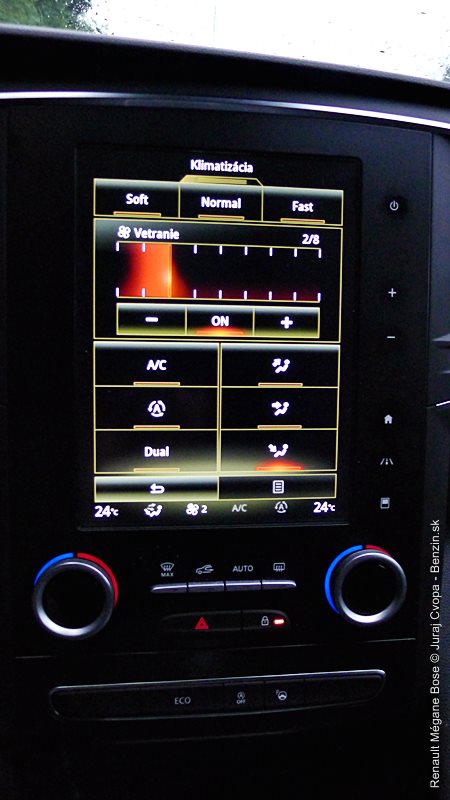 Nutno upozorniť, že softvérovo sa ovláda ako audio výbava, tak aj intenzita vetrania interiéru, teda tie najpoužívanejšie funkcie. Vyžaduje to priveľa pozornosti a videl by som tu priestor na vypracovanie intuitívnejšieho a bezpečnejšieho rozhrania. Ešte že teplotu možno regulovať otočnými ovládačmi.