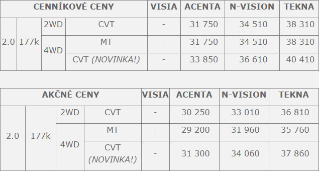Nový motor 2.0 dCi bude dostupný pre výbavy Acenta, N-Vision a Tekna so šesťstupňovou manuálnou prevodovkou a s automatickou prevodovkou Xtronic CVT.