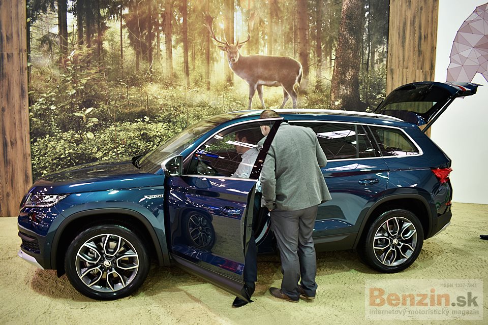 Po ostro sledovanej premiére v Ženeve sa na bratislavskom Autosalóne predstavilo jedinečné SUV ŠKODA KODIAQ SCOUT vo verzii pre jazdu v náročnejšom teréne. Výnimočný robustný vzhľad podčiarkujú špeciálne 19-palcové kolesá z ľahkej zliatiny, dĺžka 4,70 metra, sedem miest na sedenie a najväčší interiér s batožinovým priestorom vo svojej triede. Kombinácia najmodernejšieho infotainmentu a asistenčných služieb so silným pohonom 4x4 a motorom s výkonom od 110 kW (150 k) do 140 kW (190 k) robí z automobilu KODIAQ SCOUT najvšestrannejší model z portfólia značky. Spolu s modelom KODIAQ 2,0 TDI 4x4 v prevedení STYLE patrí k najväčším lákadlám Autosalónu.