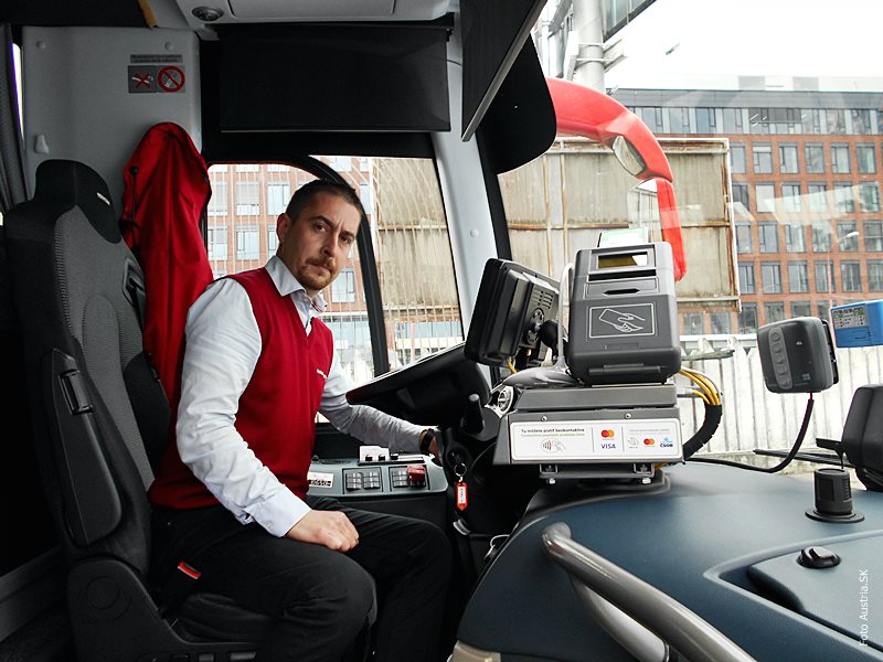 Cestujúci Slovak Lines na linke Bratislava - Viedeň si môžu kúpiť lístko komfortne u vodiča prostredníctvom platobnej karty.