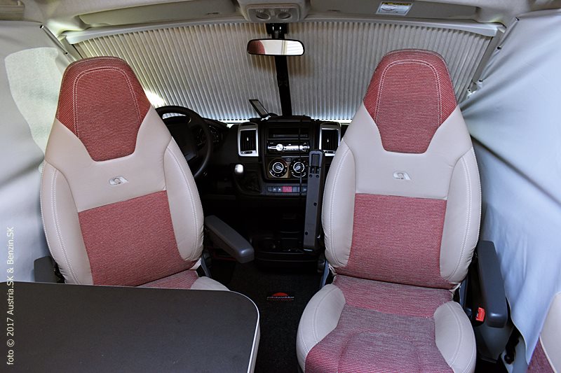 Ako používať karavanPri zapožičaní sme absolvovali inštruktáž, aby sme vedeli kde čo je a ako sa to používa. Naozaj je to obytný automobil - predná časť je cestovná, zadná oddychová a uprostred je kuchyňa s kúpeľňou. VIDEO: inštruktáž v slovenskom jazyku čo obsahuje výbava karavanu a jeho obsluha (Lukáš Šurka, Gebetsroither Hagenbrunn) Auto sa dáva na prenájom s podložkami pod kolesá na vyrovnanie terénu, aby sa parkovalo rovno; s elektrickým káblom na napojenie do elektriky v kempe; gumeným kladivom a kolíkmi na prichytenie nôh markízy. ![]() (c) Austria.sk | Benzin.sk Jazda s karavanomV našom karavane sa odvezú štyria pasažieri. Dvaja na predných a dvaja na zadných sedadlách. Hoci za sedadlom predného spolujazdca je ešte jedno bočné miesto, avšak bez bezpečnostného pásu. Predné sedadlá nie sú výškovo polohovateľné, ale dajú sa prispôsobiť sklonom a pritiahnutím k volantu, majú nastaviteľné opierky na ruky, resp. sklon. Výhľad z kabíny je parádny, aj tie najväčšie SUV-čka sa zdajú celkom maličké z tejto výšky. Vnútorné spätné zrkadlo slúži len ku kontrole detí na zadných sedadlách, lebo inak je úplne nanič. Spoliehať sa treba na vonkajšie zdvojené spätné zrkadlá. ![]() (c) Austria.sk | Benzin.sk