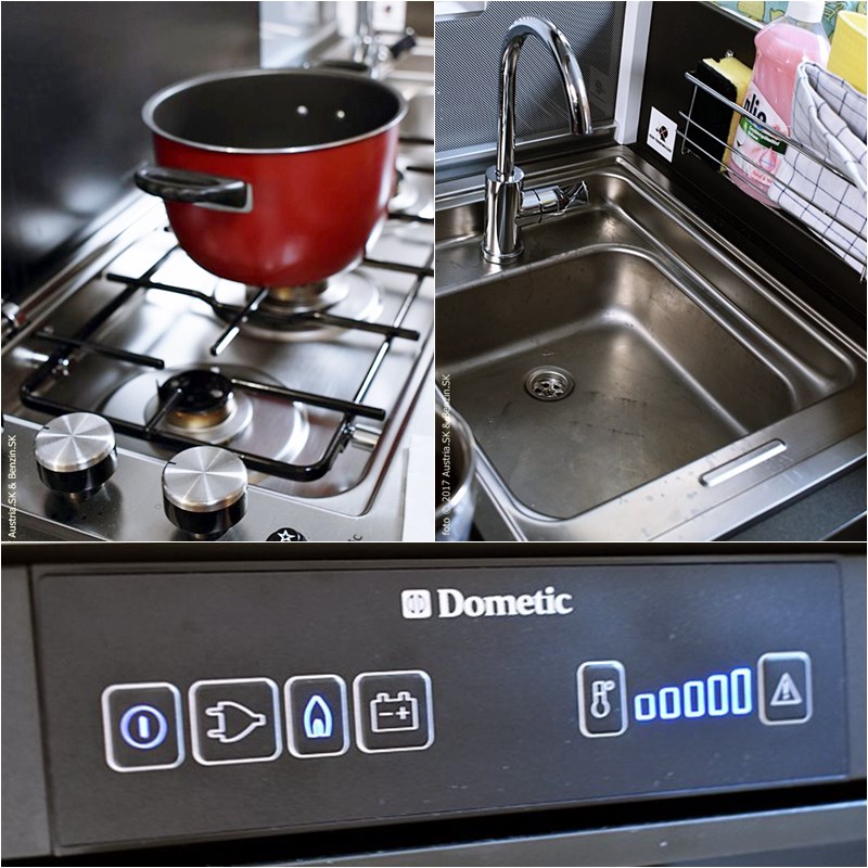 ![]() (c) Gebetsroither Interiér karavanuPredné sedadlá sú otočné - keď auto zaparkuje, dajú sa s pomocou páčky otočiť okolo svojej osi, tvárou k zadným sedadlám a vytvoria tak "obývačku". Medzi prednými a zadnými sedadlami je stolík, ktorý sa dá polohovať a prípadne aj dať preč. ![]() (c) Austria.sk | Benzin.sk V kúpeľni bola sprchová časť, WC, ale i vyklápacie umývadlo so skrinkou na hygienické potreby. A to všetko v neuveriteľne malom priestore. V sprchovacom kúte je nad hlavou okienko a malá tyč, kde sa dá zavesiť jeden menší uterák alebo jedny plavky. ![]() (c) Austria.sk | Benzin.sk Schodíky vedúce k posteli boli zároveň odkladacími priestormi. Vlastne skoro všetko bolo odkladacím priestorom. Len netreba zabudnúť, kde ste si čo odložili. Okná a okienka boli rozumne rozmiestnené po celom aute, takže nech zaparkujete akokoľvek, stále bude dostatok svetla v interiéri. Okná mali roletky (proti slnku a zvedavým pohľadom) a sieťky proti hmyzu. ![]() (c) Austria.sk | Benzin.sk V našom karavane sa vzadu mohli vyspať traja (2 dospelí + dieťa) po úprave postelí a pridaní matraca. Štvrté dieťa by sa mohlo vyspať v "obývačkovej" časti - rozobratím zadných sedadiel a bočného sedadla a ich upravením vznikla rovná plocha na spanie. Ak máte do 1,90 m, vyspíte sa v pohode, ak ste vyšší, treba nohy mierne pokrčiť. Spanie je úplne iné ako kdekoľvek inde. Ak sa v spánku partner otočí na druhú stranu, zakýve sa celý karavan a to vôbec nezáleží na hmotnosti človeka. Po pár nociach si však zvyknete. Na čo nezabudnúť?Ak idete po prvý raz s Womo (skratka z nemeckého slova Wohnmobil - obytné auto) na dovolenku, mali by ste vedieť, čo si pobaliť. Karavany sú prenajímané bez vybavenia. Budete potrebovať plachty, vankúše, deky a návlečky. Nemusíte si brať teplé paplóny a hrubé pyžamo. Nebojte sa, v karavane sa dá nastaviť požadovaná teplota a vyspíte sa pohodlne v tričku pod dekou. Zima nehrozí, keďže termostat udržuje nastavenú teplotu. ![]() (c) Austria.sk | Benzin.sk