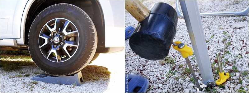 Ak nemáte kempingovú výbavu (skladací stolík a skladacie stoličky, prípadne slnečník), môžete si ju za 20,- €/týždeň požičať u prenajímateľa karavanu. Určite si ju vezmite, aby ste mohli pohodlne oddychovať, lebo nie v každom kempe máte v blízkosti lavičky a stôl. Pribaľte aj šnúru na zavesenie uterákov, šiat alebo sušiak na bielizeň.