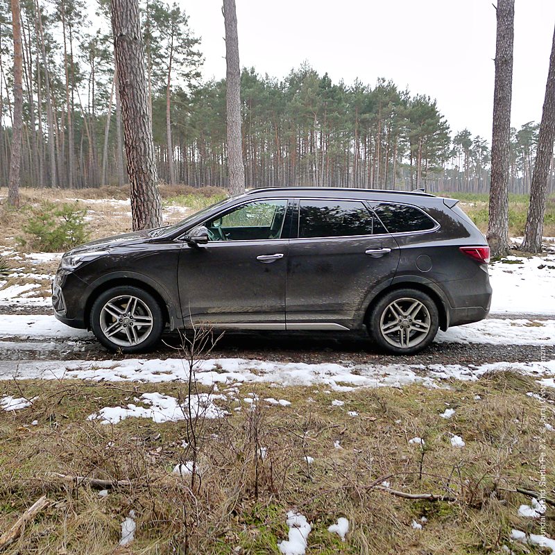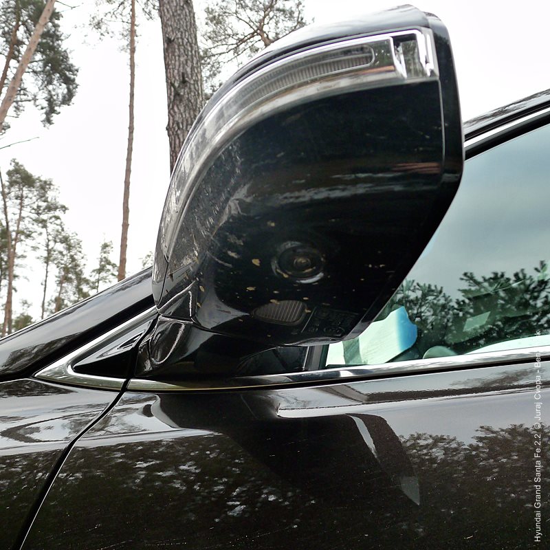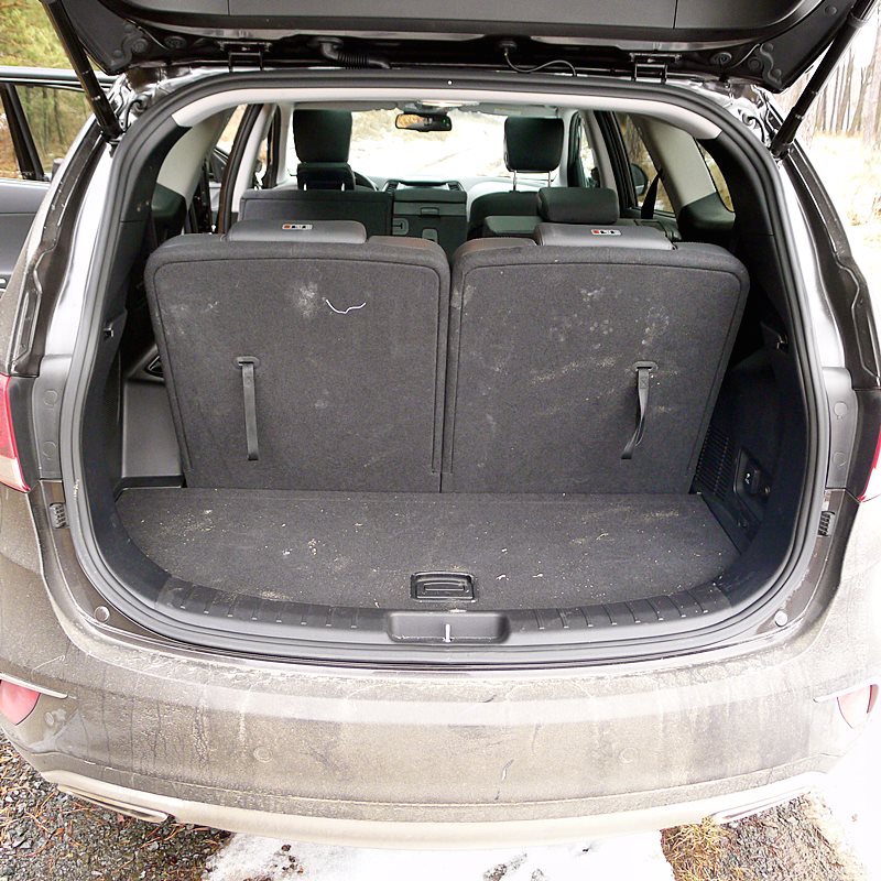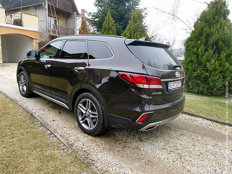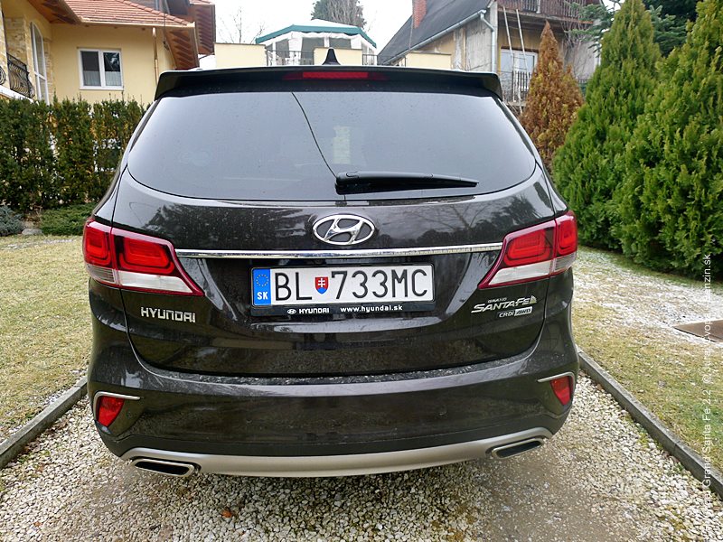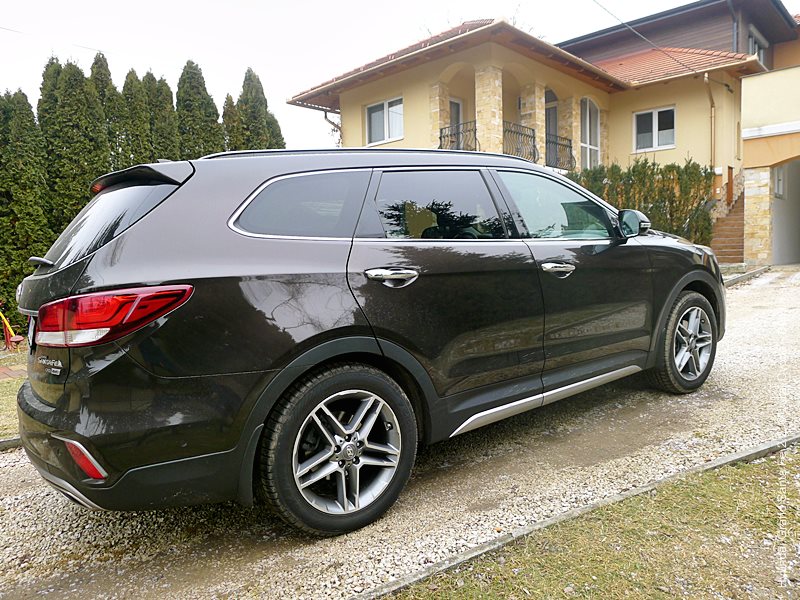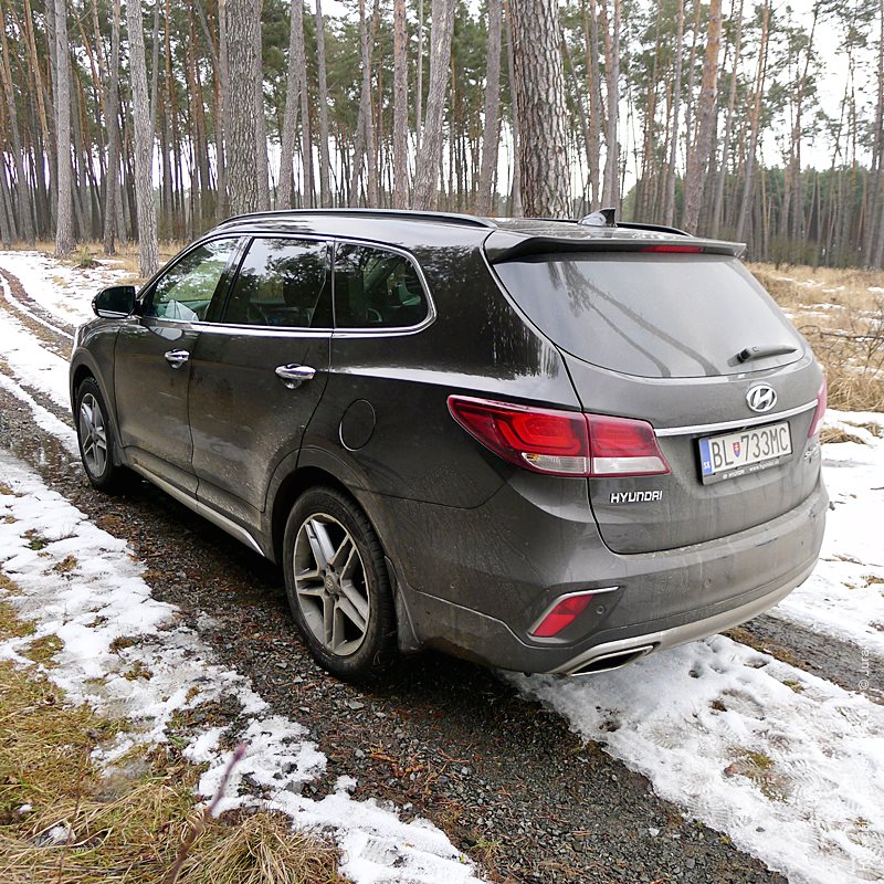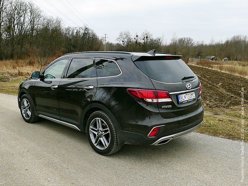 Grand Santa Fe má nielen prdĺžený rázvor, ale aj batožinový priestor, čo vzbudzuje dojem usadnutosti. Obrovský zadný previs tiež uberá z terénnych kapacít, čo nikoho trápiť nebude, keďže možnosť ísť mimo spevnenú cestu je z podstaty auta vedľajší zámer. Celkovo vzhľad poteší svojou serióznosťou, dotiahnutými detailami a všadeprítomným decentným dotykom dynamiky.