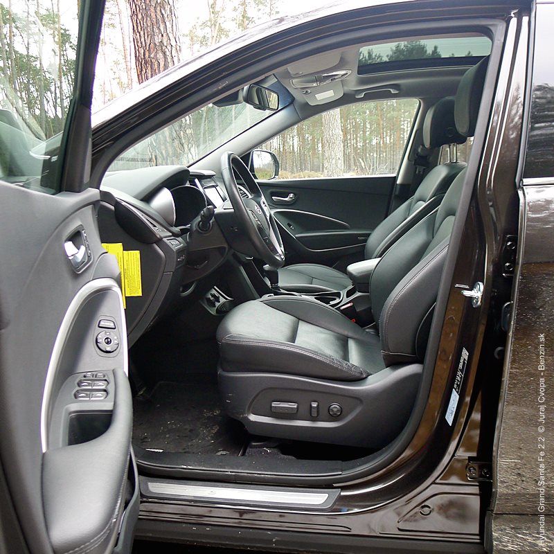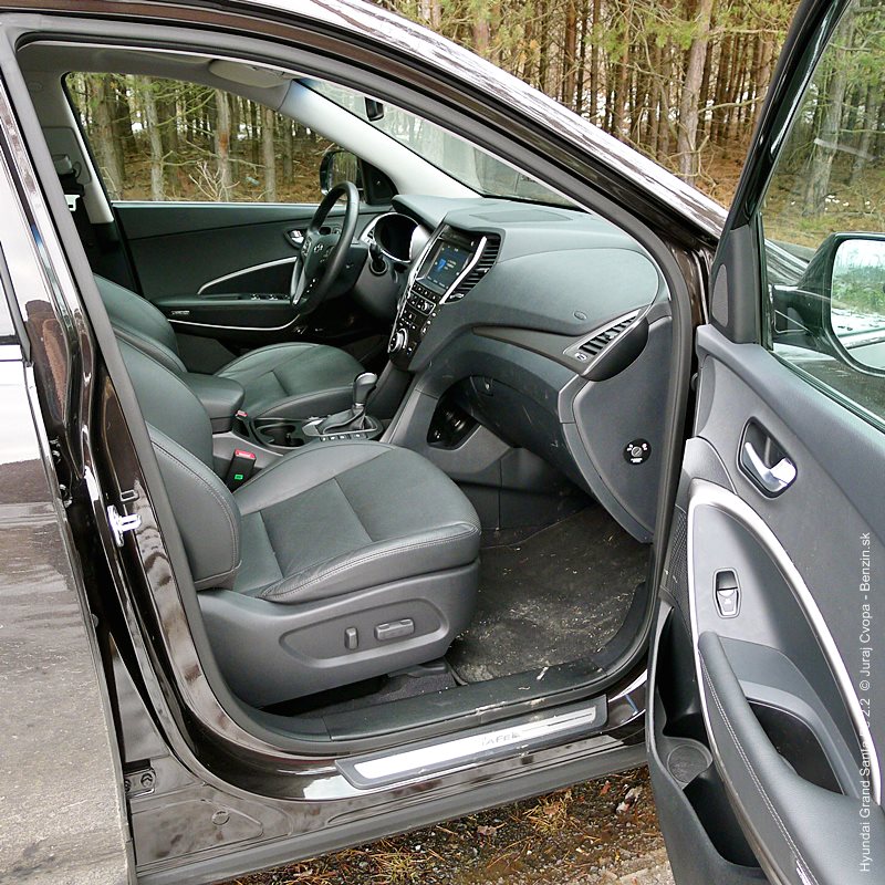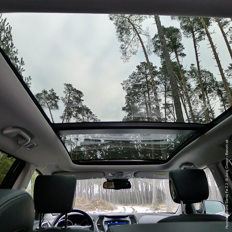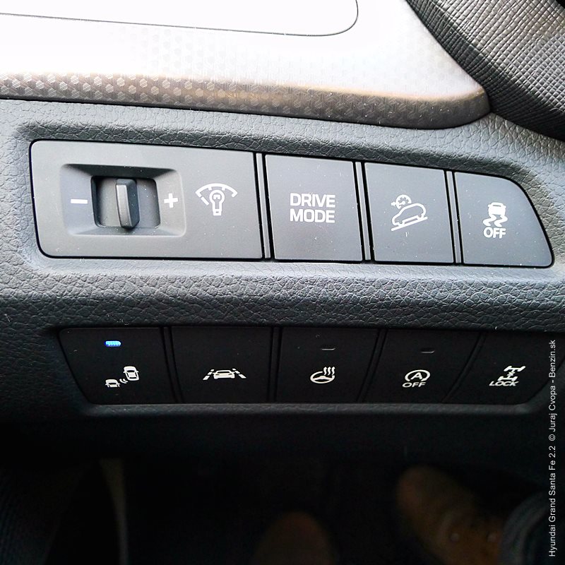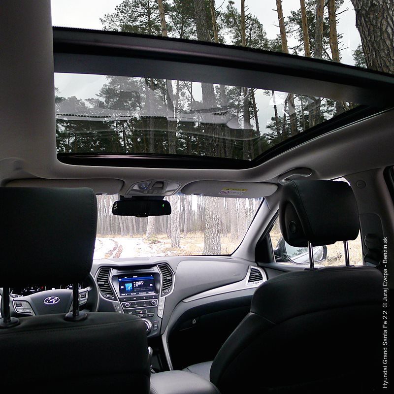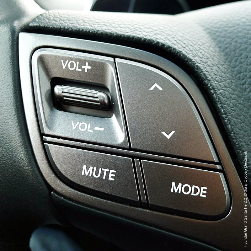 Pod kapotou pracuje 2.2-litrový preplňovaný štvorvalec, 147 kW (200 k), 440 Nm a 6-stupňová automatická prevodovka s možnosťou sekvenčného radenia. Motor svojimi paramterami k autu akurát pasuje, kameňom celého jazdného prejavu je však prevodovka. Veľký kolos v jej štandardnom móde predvádza pomalšie reakcie a letargickú odozvu na plyn. Pôsobí to ospalo a odradzuje od športových nálad. Pozorujem otáčkomer, plyn decentne stlačený, prevodovka radí vyššie pri 2000 min-1 a jazda prebieha okolo 1500 min-1. Stále. A pokiaľ sa ide do 90 km/h, štverá sa v podobných otáčkach aj na Pezinskú Babu, teda kopec, kde sa usporadúvajú závody do vrchu. No v móde Sport, to je ako prejsť na druhú stranu zrkadla. Z Grand Sana Fe sa tak stáva nabudené, k svetu sa majúce zviera, ktoré pomerne agresívne reaguje na najjemnejšie pohladenie plynu. A tu začína radosť.