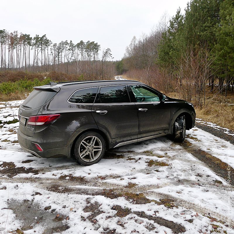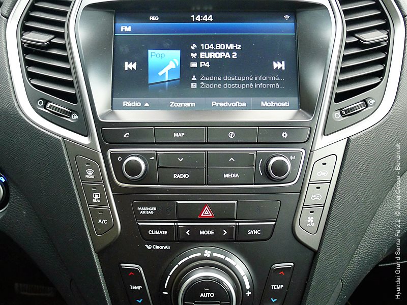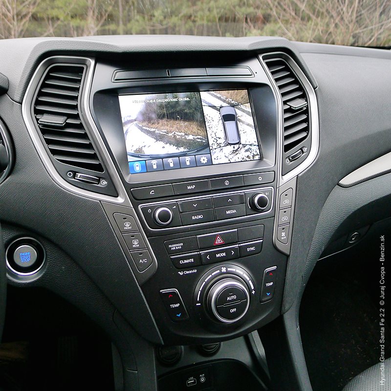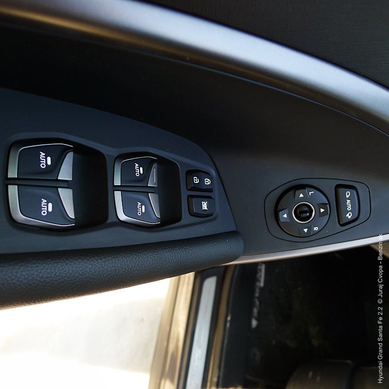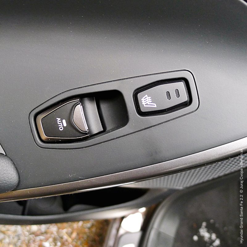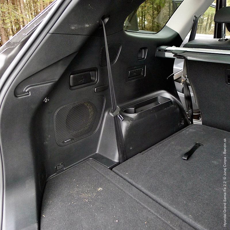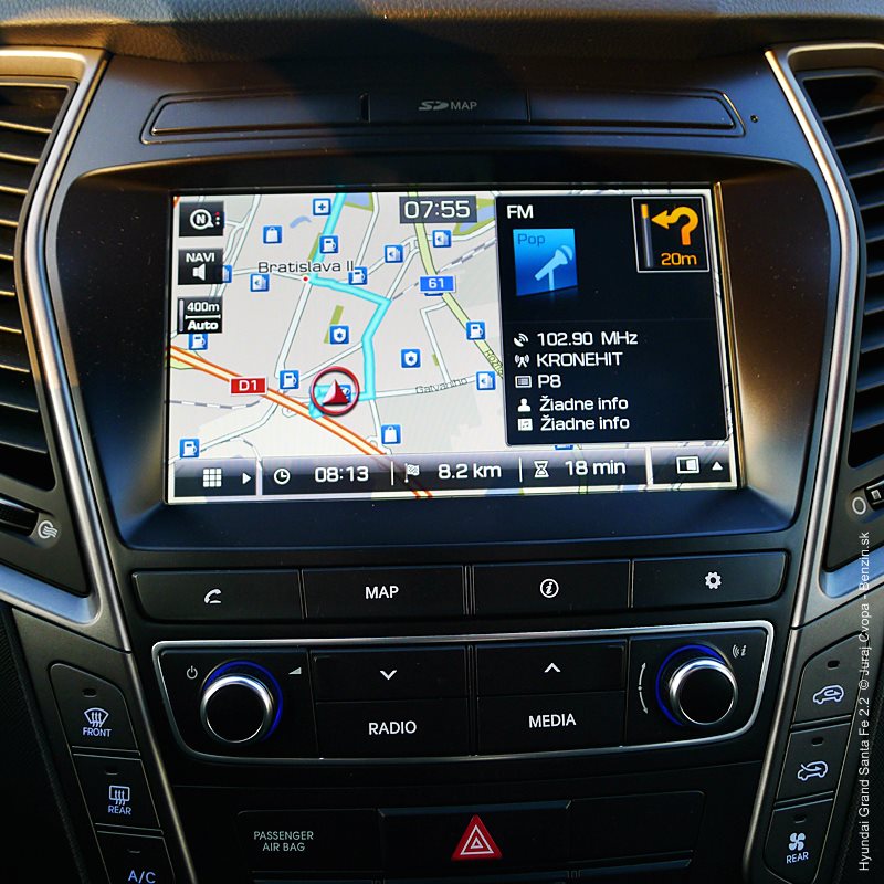 Pod kapotou pracuje 2.2-litrový preplňovaný štvorvalec, 147 kW (200 k), 440 Nm a 6-stupňová automatická prevodovka s možnosťou sekvenčného radenia. Motor svojimi paramterami k autu akurát pasuje, kameňom celého jazdného prejavu je však prevodovka. Veľký kolos v jej štandardnom móde predvádza pomalšie reakcie a letargickú odozvu na plyn. Pôsobí to ospalo a odradzuje od športových nálad. Pozorujem otáčkomer, plyn decentne stlačený, prevodovka radí vyššie pri 2000 min-1 a jazda prebieha okolo 1500 min-1. Stále. A pokiaľ sa ide do 90 km/h, štverá sa v podobných otáčkach aj na Pezinskú Babu, teda kopec, kde sa usporadúvajú závody do vrchu. No v móde Sport, to je ako prejsť na druhú stranu zrkadla. Z Grand Sana Fe sa tak stáva nabudené, k svetu sa majúce zviera, ktoré pomerne agresívne reaguje na najjemnejšie pohladenie plynu. A tu začína radosť.