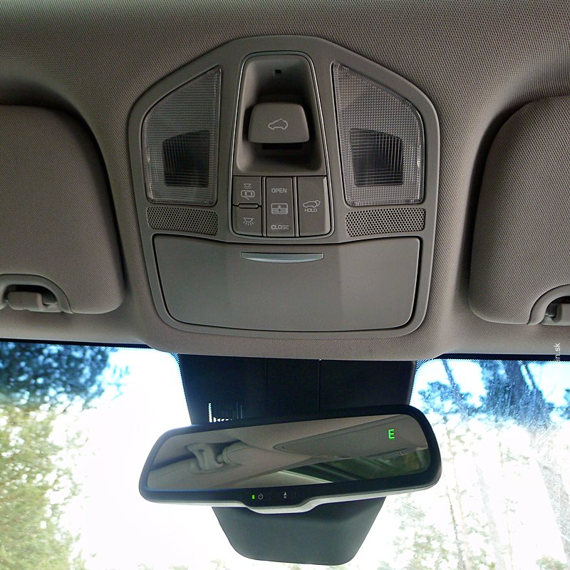 Inak je stredová konzola pozitívne stručná, v strede základné ovládače rádia, nižšie a po stranách rôzne možnosti vetrania, klimatizácie a ohrevov spolu so separátnym vetraním pre tretiu radu sedadiel. Pred radiacou pákou priestor pre peňaženku, doklady, telefón s nabíjačkou, kabelku, líčidlá a všetko, čo sa nezmestilo do kufra, veru tak, dostala veľmi slušný objem. Základňu radiacej páky s klavírnym lakom a koženým obšitím obklopujú tlačidlá viacstupňového vetrania sedadiel s ohrievaným alebo chladeným vzduchom, elektrická ručná brzda, funkcia 360° výhľadu okolo auta na stredovom displeji (umožňuje výbornú manévrovateľnosť pri parkovaní a dá sa tlačidlom aktivovať kedykoľvek) a parkovacej senzoriky s automatikou. Dva poháre či fľaše rôznych veľkostí si nájdu svoje miesto v držiakoch a všetko, čo nemá oko vidieť, treba nasypať pod veko lakťovej opierky.