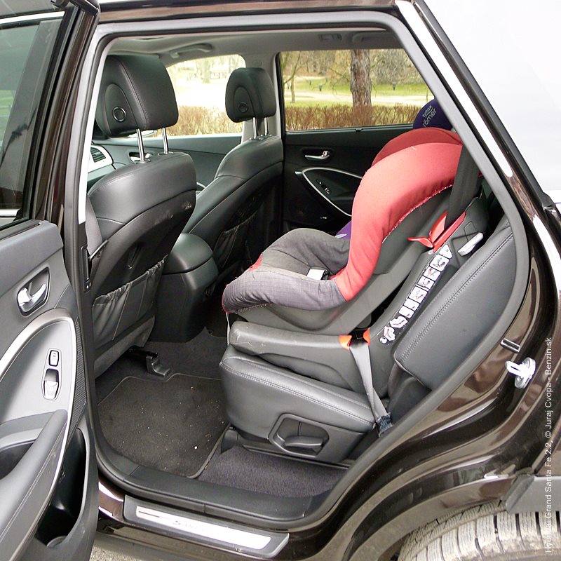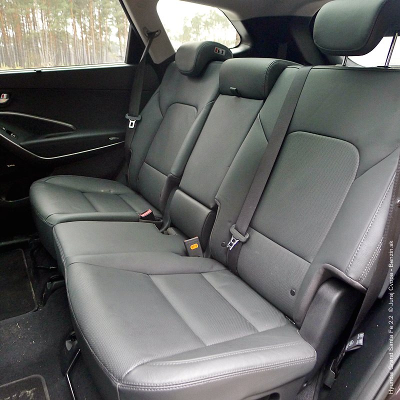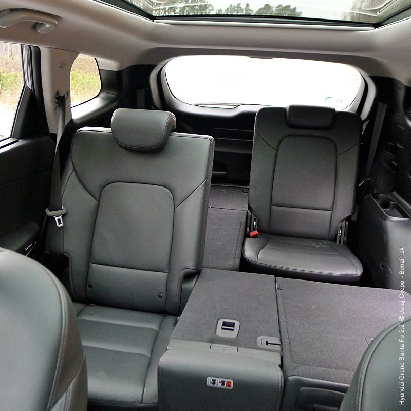 Na zadných sedadlách sa dá v mrazoch tiež solídne prežiť vďaka dvojstupňovo vyhrievaným sedadlám a komfort podčiarkuje aj možnosť nastaviť si uhol operadla, pozdĺžny posuv sedadla, či vytiahnuť si slnečnú roletku na okne. Celkový dojem kladne dopĺňa aj panoramatické strešné okno, ktoré si užijú hlavne cestujúci vzadu. Do tretej rady sedadiel sa dá dostať po vyklopení a posunutí stredného radu sedadiel výrazne vpred. Nástup je svojbytný, keďže treba poriadne dvíhať nohy, pretiahnuť sa poza operadlá a zapadnúť hlboko dozadu. Posed by som videl vhodný aj pre dospelú osobu, ak sa táto uspokojí s menším rozmerom sedadla a zvýšenou polohou chodidiel. Samostatné výduchy tu trochu prevzdušnia a spríjemnia pobyt, spolu s odkladacími priestormi a držiakom na poháre. Zo 634 litrov batožinového priestoru veľa neostane a tak sa ponúka možnosť strešného nosiča a truhlice, no to by som už odporúčal mať po ruke rebrík.