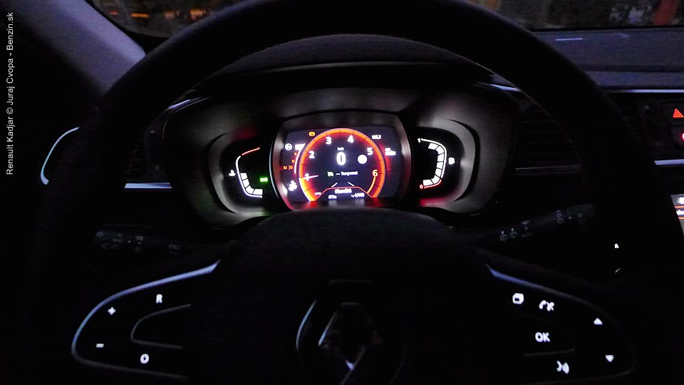 ![]() Exteriér Plavné línie s vyrysovanými svalmi a 200 mm svetlosťou odkazujú na mix SUV-čiek, ale aj sedanov a kombíkov. Predná maska pripomína úsmev a monumentálne logo sa nezdá byť tak nadopované, ako u menších modelov. Kapota sa v miestach nad blatníkmi ťahá hore ako voda na stenách kapilárky, čo dáva ozvláštňuje (a okliešťuje) výhľad z auta. Tá výška jej pomáha k plynulému estetickému napojeniu sa na A-stĺpiky. Pri pohľade z boku zaujme tvar línie spodnej hrany okien, ale aj obrovská vkusne tvarovaná bočná ochranná lišta medzi kolesami. Plní ochrannú funkciu, keďže prekrýva aj podbehy, čím chráni plech pred streľbou kamienkov spod kolies. Zastavím sa pri plechu: platforma CMF používa tenkostenný, lisovaný za tepla pri 900 °C a prudko schladený, čo mu dáva vysokú pevnosť ako aj nízku hmotnosť a ![]() hrúbka jeho antikoróznej vrstvy dosahuje 1000 mikrometrov, čo je výrazne nad priemerom branže (650 um). Ale späť k dizajnu. Zadná časť opäť myslí na ochranu karosérie svojou nelakovanou spodnou časťou nárazníka, čo som zbadal hneď po analýze koncových svetiel nie nadarmo roztiahnutých aj na zadných blatníkoch. Tá svetelná pomazánka totiž aj decentne svieti, čo poteší. Úroveň celého auta udržuje aj zadní časť a to sa v dnešnej dobe počíta najviac. ![]() Interiér Bezkľúčový prístup si žiada stláčať tlačidlo na dverách, čomu sa čudujem a zaháňam otázku ohľadne jeho životnosti. Po usadnutí za volant a nastavení posedu, zrkadiel, volantu a zresetovaní palubného počítača rovno vyrážam. Radia páka automatickej prevodovky ma trochu zarazila nevyzretosťou, ktorú potvrdila počas jazdy neustálym povrzgovaním plastíkov, kryjúcich dráhu páky. Spomínam pritom na Mégane a jeho manžetové krytie. To vzhľad páky manuálnej prevodovky viac padne do oka. Inak celkovo sa za volantom sedí veľmi dobre a to aj vďaka celokoženkovým sedadlám a ich penovej výplni s dvojitou tuhosťou. Pasujú na telo, poskytujú komfort aj podporu, sú priestorovo úsporné vo vzťahu k cestujúcim vzadu a ich trojštvrťové bočné vedenie sadne hádam každej postave. Harmóniu narúša tvrdá hrana stredovej konzoly, o ktorú sa musí opierať pravé koleno. Inak vypracovanie interiéru a jeho čalúnenia je precízne, so skvelou ergonómiou a dizajnom, čo viac menej vyváži spomenuté nedostatky. Je tu cítiť šírku (1.84 m) a priestrannosť. Crossoverovský „touch and feel“ zdôrazňujú madlá na dverách a stredovej konzole. ![]() Prístrojový štít by som najradšej prirovnal k nejakej hre, je plne digitálny, ukazuje všetko možné a teda dostal aj chameleónovské spôsoby, keďže sa dá zmeniť jeho vzhľad (otáčkomer, rýchlomer, mód economy alebo sport). Mimo iné tu je aj ukazovateľ hp/Nm, ktorý sa dá zmeniť na rádio, či piktogramovú navigáciu. Ukazovatele paliva a teploty motora sú digitálne tiež, ale nepochopiteľne hrubo segmentované. Aký kontrast k precíznosti stredového prístroja. Pre teplotu vody je to ešte ok, no pre palivo by som volil určite jemnejšie delenie, pri konci poľa sa to hodí. Zlaté analógové ručičky. Už akoby bol Mégane v rámci ponuky Renaultu etalónom. No nie je to tak, pretože dávam na tomto mieste veľké hurá pre klasické ovládače vetrania a kúrenia. Žiadne softvérové riešenia, tak to má byť. ![]() Vysokú funkcionalitu dodáva autu palubný systém R-Link 2 so 7“ kapacitným dotykovým displejom a ovládaním podobným tabletom. Podobne ako v Mégane, sa tu dajú ovládať nastavenia kompletnej sady jazdných asistentov, navigácia, telefón, multimédiá, príp. aplikácie, stiahnuteľné cez internet z R-Link Store obchodu (apky pre jazdu, cestovanie, správy, sociálne médiá a iné praktické riešenia). Chválim pekne animovanú navigáciu s vtáčou perspektívou a Kadjarom ako ikonou. ![]()