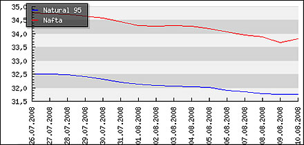 | Priemerné ceny pohonných hmôt v Českej republike k 11.8.2008 |