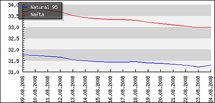 | | Nafta: | 1,762 € | | Benzin 95: | 1,697 € | | Benzin 95+: | 1,686 € | | Benzin 99+: | 1,865 € | | LPG: | 0,870 € |