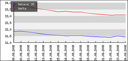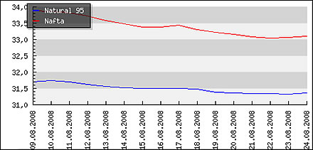 | Priemerné ceny pohonných hmôt v Českej republike k 25.8.2008 |