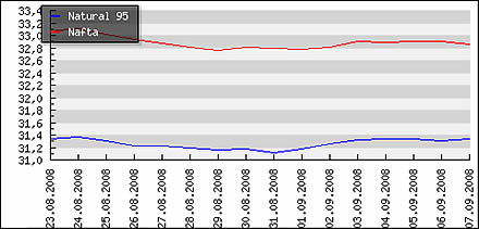 | Priemerné ceny pohonných hmôt v Českej republike k 8.9.2008 |