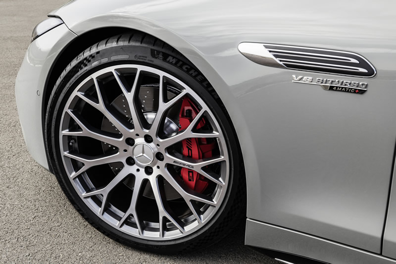Obloženie chladiča špecifické pre AMG zdôrazňuje dojem zo šírky prednej časti vozidla a so 14 zvislými lamelami odkazuje na predchodcu všetkých modelov SL – legendárne pretekárske vozidlo 300 SL z roku 1952. K ďalším charakteristickým dizajnovým prvkom patria ploché, ostro tvarované svetlomety DIGITAL LIGHT s LED a extrémne ploché zadné svietidlá s LED.