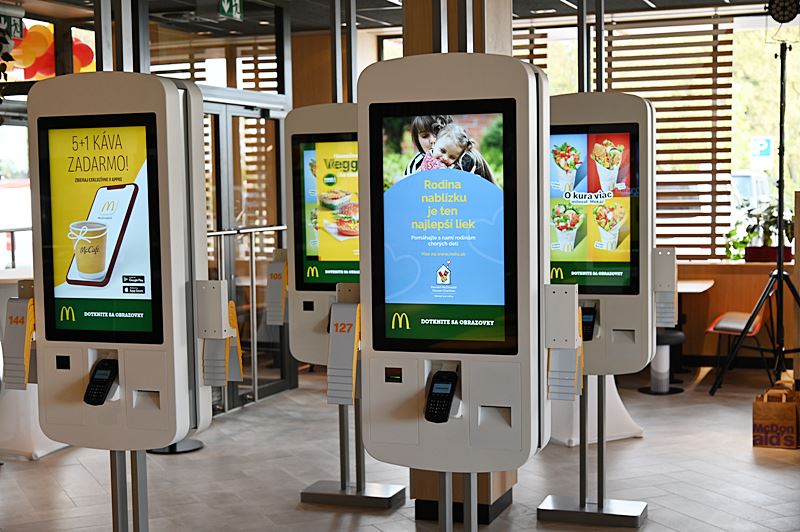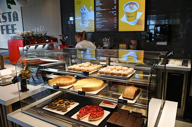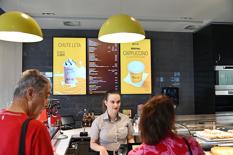 Vo vnútri je 10 samoobslužných objednávacích plôch, kde si zákazníci môžu rýchlo objednať vlastné kombinácie pokrmov a nápojov. Samozrejme, nechýba ani kaviarenská časť a kútik s digitálnymi hrami pre najmenších.