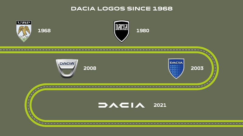 Prvé logo v histórii spoločnosti Dacia je presiaknuté národnými a miestnymi odkazmi. Hora v pozadí je poctou Rumunsku, konkrétne Karpatom. Orol v strede je inšpirovaný erbom župy Arges v regióne Muntinia, kde sa nachádza sídlo spoločnosti UAP.