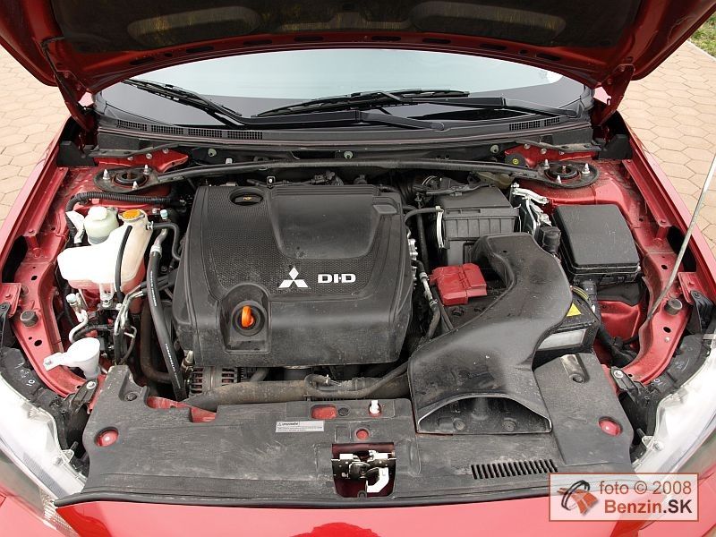 Do Mitsubishi Lancer Sport sa montujú dva benzínové motory, 1,5 l DOHC MIVEC 110 k a 1,8 DOHC MIVEC 144 k. Pripravovaný zážihový motor 2,0 l Turbo DOHC MIVEC 295 k bude prednostne určený pre Mitsubishi Lancer Evolution. My sme mali pod kapotou turbodieselový motor z produkcie koncernu Volkswagen AG, ktorý využívajú aj iné modely značky Mitsubishi. Dvojlitrový štvorvalec s rozvodom DOHC a 16 ventilmi využíva technológiu čerpadlo-tryska a turbo dúchadlo s medzi chladičom stláčaného vzduchu. Spolupracuje so šesťstupňovou mechanickou prevodovkou, ktorá v podmienkach pomerne tvrdého diesela dokáže zhodnotiť vysoký krútiaci moment motora pri zaujímavej spotrebe. Motor bolo počuť najmä pri studenom štarte a potom pri prudkom zošliapnutí akcelerátora, no pri diaľničnej rýchlosti bol skoro nepočuteľný. Tam sa skôr ozývalo do karosérie odvaľovanie zimných pneumatík zadnej nápravy. Pri jazde bolo cítiť silný turboefekt, od 1800 ot/min citeľne nastupovala razancia motora. Maximum krútiaceho momentu 310 Nm sa tabuľkovo dosahuje už pri 1750 ot/min. Pri rýchlosti 130 km/h je 2500 ot/min motora ešte v ekonomickej zóne, čo sa priaznivo prejavuje na spotrebe, kde sme sa pohybovali na hranici 6,1 l nafty na 100 km, a to ako pri použití tempomatu, tak aj bez neho. Spotreba sa dá kontrolovať pomocou palubného počítača s trochu nešikovne umiestneným ovládacím tlačidlom vľavo pod volantom. V meste sme sa dostávali aj k úrovni 8 l. Samozrejme, súvisí to s preplnenosťou ciest najmä v Bratislave. Razantnejšia jazda sa naopak na spotrebe výraznejšie neprejavovala. Počas testu sme zaznamenali priemernú spotrebu 7,1 l na 100 km, čo na jednu nádrž predstavuje 850 prejdených kilometrov. Treba dodať, že automobil mal najazdených 12 000 km a pri turbodieseloch sa za dobre zabehnutý motor s optimálnou spotrebou považuje úroveň 25 000 km.