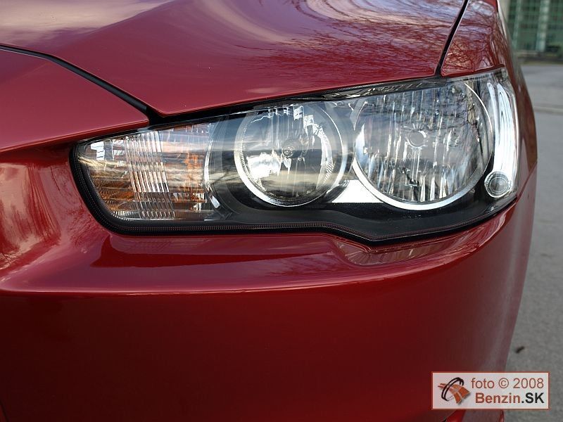 Dynamická línia automobilu je dominantná. Ostro privreté trojdielne svetlomety s xenónovou optikou pod priehľadným akrylátom korešpondujú s podobne privretými koncovými svetlami. Najvýraznejšie je však ostré tvarovanie masky, ktoré samotný výrobca prirovnáva ku línii žraloka a prúdovej stíhačky. A toto prirovnanie aj skutočne sedí. Stúpajúca bočná línia len dotvára želanú dynamiku celého diela s názvom Lancer Sedan Sport, navyše okorenenú prítlačným krídlom v zadnej časti kufra.