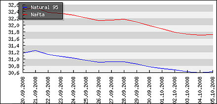 Vývoj priemerných cien pohonných hmôt v Moravskoslezskom kraji ČR: ![]()