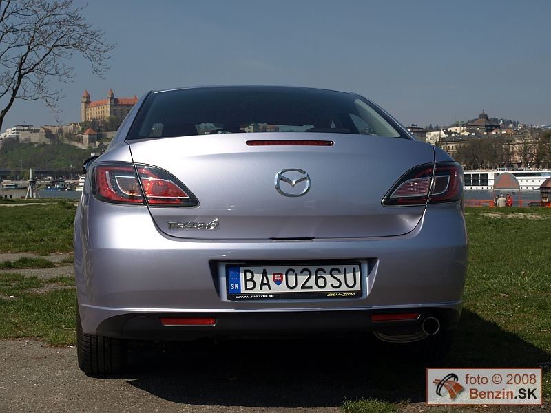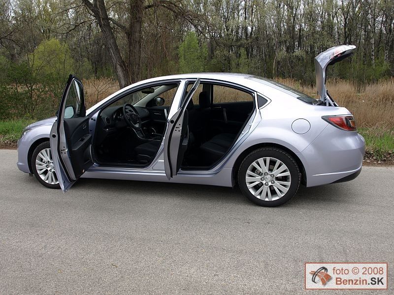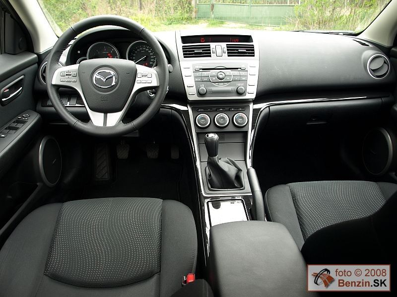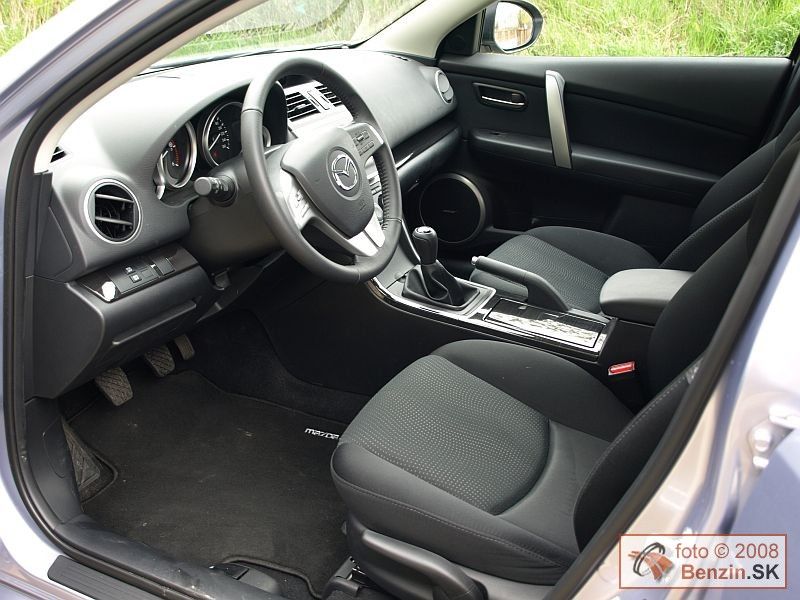 Mladícky elán, ktorý vystupuje z kriviek automobilu naozaj počas testu zaujímal väčšinu okoloidúcich. Dizajnový prvok, ktorý spája všetky športovo ladené mazdy je prelis v blatníku na prednými kolesami. Najvýraznejší je na wankelovej Mazde RX-8 a má ho aj malá Mazda 2, čin 3. Tento prvok svedčil aj našej elegantnej Mazde 6. Podobne ako stúpajúca bočná línia karosérie s príjemným plynutím a prelievaním sa kriviek. Reflektory a koncové svetlá tiež rešpektujú tieto tvarové variácie. Nastupovanie do vozidla je bezproblémové a v interiéri je dostatok miesta pre piatich cestujúcich. Možno trochu menej miesta nad hlavou môžu pociťovať na zadných sedadlách len basketbalisti s výškou nad 190 cm. V interiéri počas jazdy panovala pohoda, ktorú zvyšovala aj kvalita použitých materiálov a ergonomicky dobre prepracované ovládanie vozidla. Prispieva k tomu multifunkčný volant s nastavovaním v dvoch osiach, ako aj ľahko ovládateľná páka šesťstupňovej prevodovky.