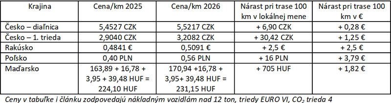 Jazdenie v zahraničí sa slovenským prepravcom v roku 2026 predraží. Väčšina susedných krajín pristúpila k úpravám cien mýta na spoplatnených úsekoch ciest.