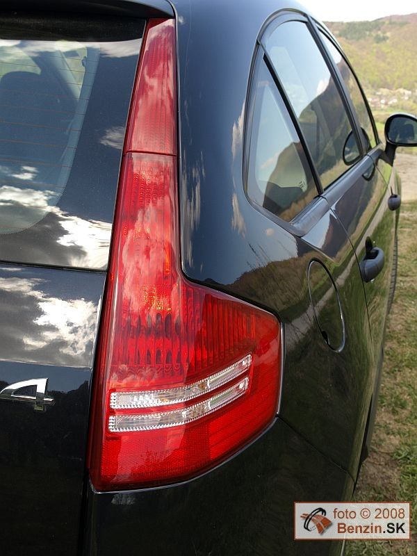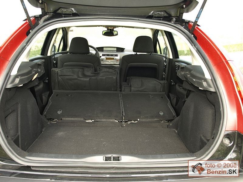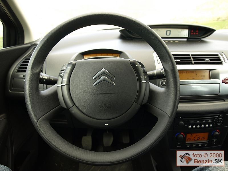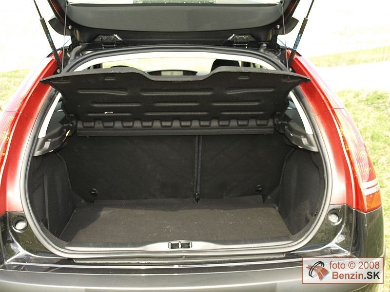 Aj v minulosti sa snažili Citroëny vždy priniesť niečo nového, prekvapivého. S modelom C4 sa to konštruktérom zasa naplno podarilo. Maska prísne zapadá do koncernového zámeru viditeľne prezentovať znak šikmého ozubenia, aj celkový štýl oblých tvarov je dobre čitateľný. Celkový výsledok je osobitý, príjemný a navyše ponúka údaj, na ktorý sa s nástupom vyšších karosérií pomaly zabudlo. Koeficient odporu vzduchu 0,28. Takto aerodynamicky vyzretá karoséria má aj zaujímavý rázvor 2608 mm, z čoho sa tešia najviac pasažieri na zadných sedadlách, ktorí tam môžu užívať dostatok životného priestoru. Čalúnenie sedadiel sa nám zdalo trochu primäkké. Do kufra za piatymi dverami sa zmestí 352 litrov batožiny. Po sklopení zadných sedadiel sa tento priestor rozrastie na 1083 litrov, vysoká hrana vstupného otvoru však ostáva. Postupne sme sa prepracovali do interiéru, ktorý pred vami postupne odkrýva množstvo zaujímavostí a prekvapení. V prvom rade sedadlá majú dobré tvarovanie, ktoré podrží telo aj pri prudšom prejazde zákrutami. O bezpečnosť sa starajú dva predné airbagy, dva bočné a dva hlavové. Predné airbagy majú definované nafukovanie podľa sily nárazu.