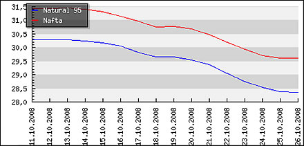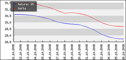 | Priemerné ceny pohonných hmôt v Českej republike k 27.10.2008 |