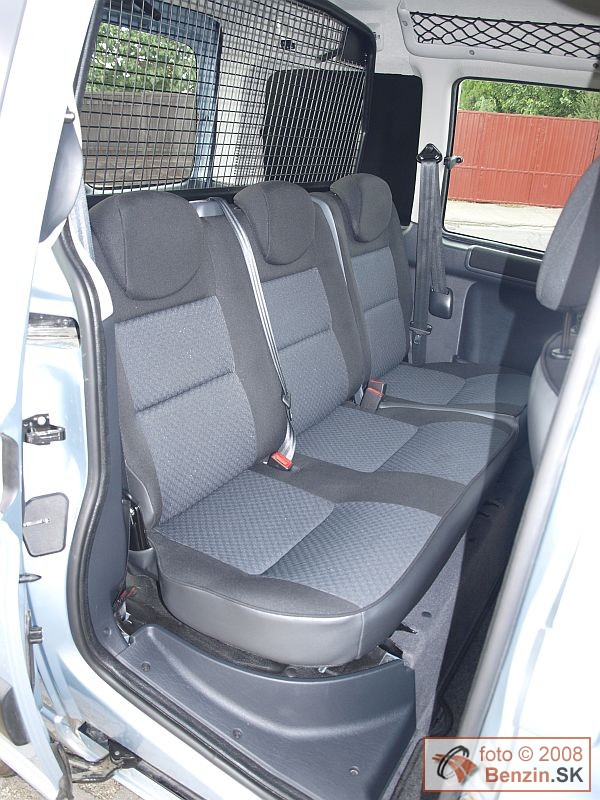 Od roku 2003 je tvar nami skúšaného automobilu už dobre známy, preto sa radšej zameriame na interiér. Je priestranný a plne čalúnený. Ani v komforte si nezadá s osobným automobilom nižšej strednej triedy. Ponúka však neporovnateľne veľkorysejšie priestorové možnosti. K tomu prirátajme rôzne odkladacie priestory aj nad úrovňou okien a dostávame sa k ideálnej miere rodinného automobilu. Na druhej strane zadné, nesymetricky delené sedadlá sú sklopné a deliaca mreža sa dá posunúť až za predné sedadlá. Otvorený priestor troch metrov kubických je ideálny aj na pracovné vyťaženie. Škoda, že sme mali len verziu s jednými posuvnými bočnými dverami na pravej strane. Ak chcel šofér niečo často vykladať alebo nakladať, vždy musel obísť celý automobil. Preto by sme pre pracovné vyťaženie uprednostnili verziu s dvojicou posuvných bočných dverí, teda na každej strane.