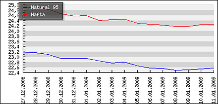 | Priemerné ceny pohonných hmôt v Českej republike k 12.1.2009 |