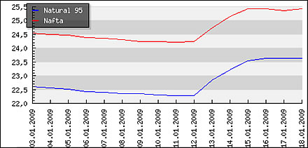 Vývoj priemerných cien pohonných hmôt v Moravskoslezskom kraji ČR: