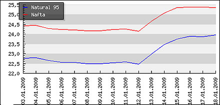 Vývoj priemerných cien pohonných hmôt v Zlínskom kraji ČR: