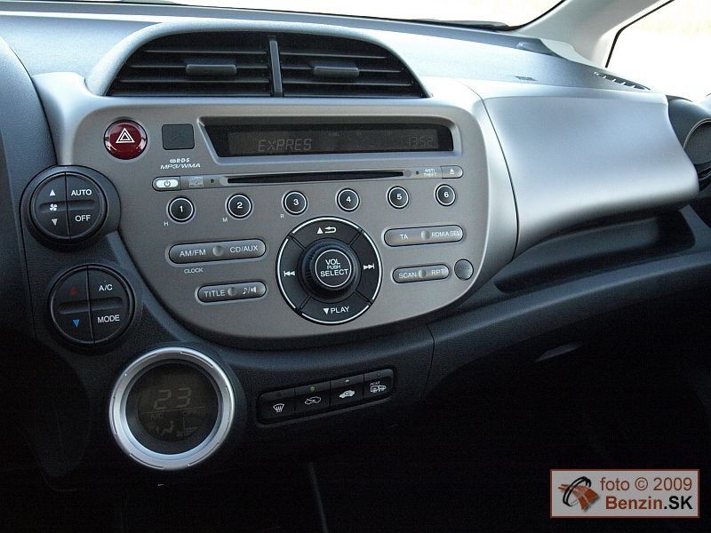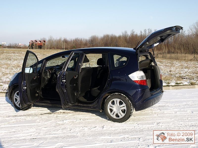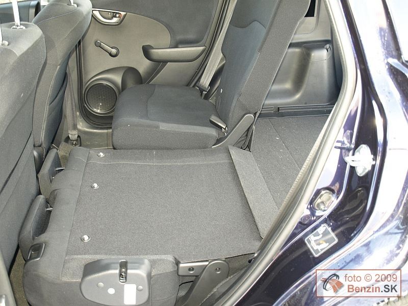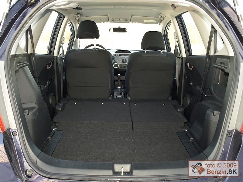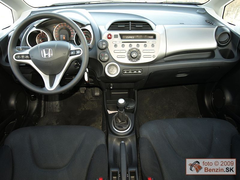 Kategória malých mestských automobilov s dĺžkou karosérie do 4 metrov sa začína podobať na seba stále viac. Môžu za to limitujúce rozmery tejto triedy v súvislosti s využitím vnútorného priestoru. Ergonómia jednoducho konštruktérov nepustí iným smerom. No aj v tejto plejáde vozidiel si Honda Jazz zachovala svoju osobitosť. Predné okno sa posunulo ešte viac dopredu, čím sa vytvoril väčší priestor pre rozmerný prístrojový panel. Ten nesie svieže tvary, ktoré novým generáciám vytýčil model Civic. Typickým predstaviteľom tejto línie je najmä volant, ale aj akoby trojrozmerné umiestnenie kruhových prístrojov a displejov. Výsledok je naozaj pôsobivý. Navyše pohodlie, ale najmä podpora, ktorú poskytujú pri prejazde zákrutami sedadlá, nebýva pri mestských automobiloch bežné. Tam sa vyžaduje skôr variabilita využitia vnútorného priestoru a tú dali tiež konštruktéri Honde Jazz do vienka. Zadné sedadlá sa dajú sklopiť jedným ťahom a vytvorí sa rovná plocha pre batožinu. Zaujímavosťou je vyklopenie sedadiel dozadu a hore, no pre tento spôsob sme nenašli až také využitie ako pri klasickom sklopení. Ešte dodajme, že multifunkčný volant má nastavovanie v dvoch rovinách, nechýbajú elektricky ovládané spätné zrkadlá a predné okná, automatická klimatizácia.