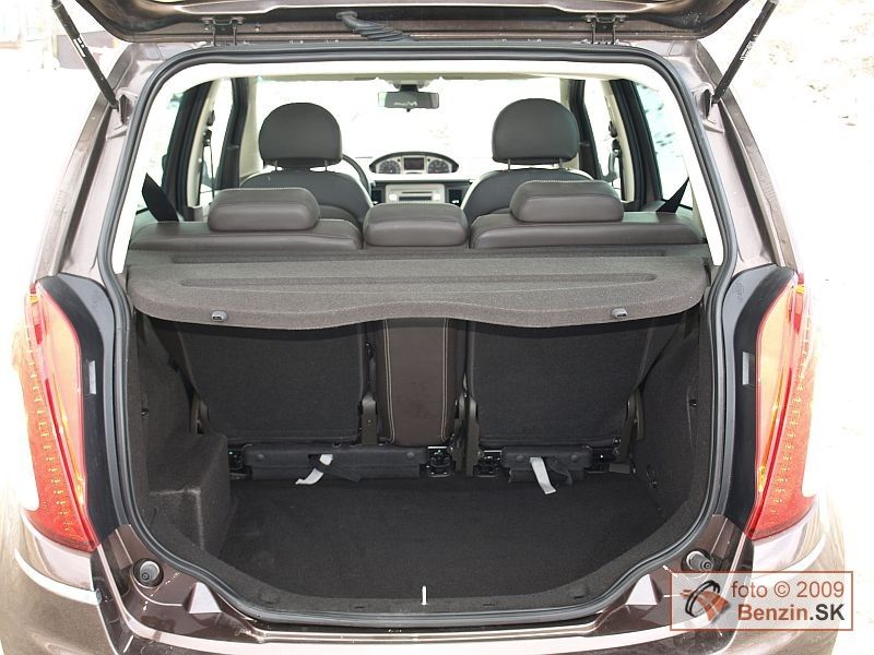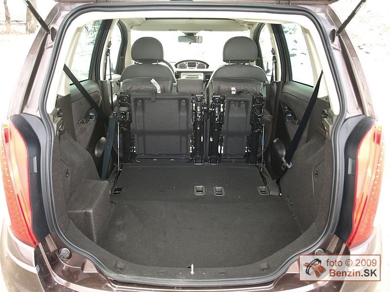 Prístroje tam vystriedala odklápacia schránka. Na druhej strane, pred spolujazdcom je taká istá schránka, navyše väčšie vykrojenie prístrojového panelu otvára ďalšíí priestor pre nohy. Vďaka vyššiemu posedu typickému pre van, je dosť miesta aj na zadných sedadlách, pre troch dospelých je však tento priestor trochu tesnejší. Zadné sedadlá majú tiež bohaté tvarovanie a dajú sa jednoduchým spôsobom zložiť jedným ťahom. Vytvorí sa tak dokonale rovný priestor kufra, ale s vyvýšenou nakladacou hranou.