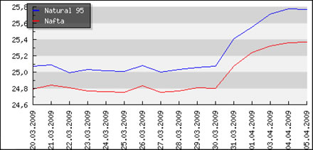 | Priemerné ceny pohonných hmôt v Českej republike k 06.04.2008 |