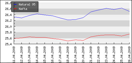 | Priemerné ceny pohonných hmôt v Českej republike k 27.04.2008 |