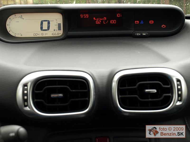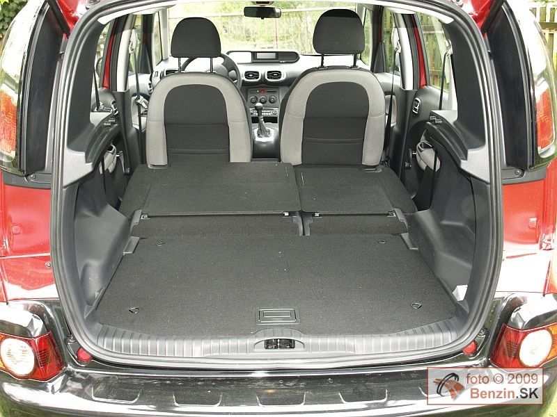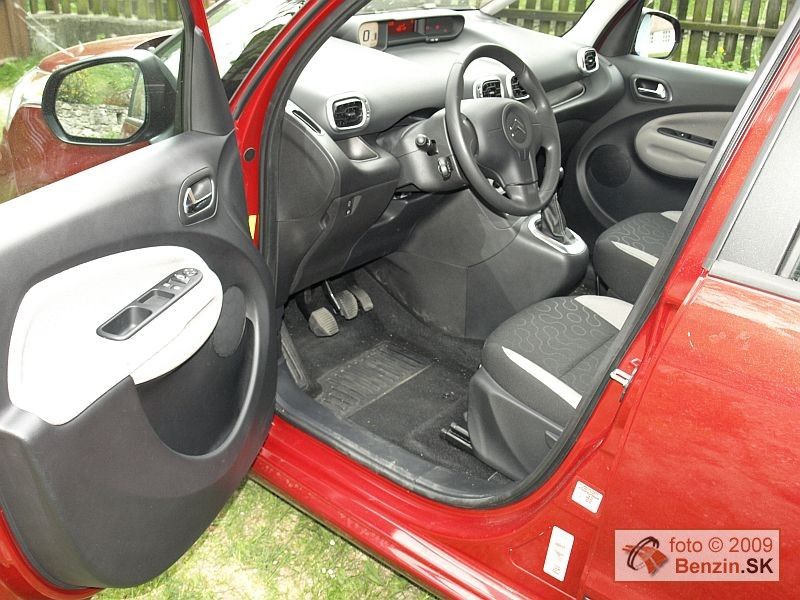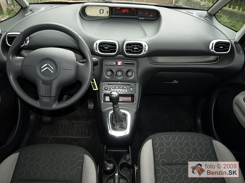 Digitálny centrálny prístroj bielej farby je v kontraste s tmavou grafikou dobre čitateľný za všetkých podmienok, dokonca, pretože je spredu priesvitný, cez ho deň pomáha podsvietiť aj slnko, je to taký zaujímavý pocit zo živého kontaktu s prirodzeným svetlom. Sedenie je pomerne vysoké a priestoru nad hlavami je vďaka vyššej karosérii nadostač. Ku komfortu počas jazdy, okrem tichého motora prispieva aj v dvoch osiach nastaviteľný volant, ovládanie tempomatu, elektrické ovládanie zrkadiel a predných okien, ale aj indikátor zapnutia pásov všetkých pasažierov vo vozidle nad vnútorným spätným zrkadlom, veď Citroën C3 Picasso získal päť hviezdičiek podľa EuroNCAP a vo výbave nechýba ani 6 airbagov. Pozrime sa ešte do kufra, jeho priemerná hodnota je len relatívna, po naloženie až po strechu sa z 385 litrov zvýši až na 500. Navyše dno je dvojdielne, pod kryt sa zmestia ďalšie litre, len škoda že kryt nie je dvojdielny, ak niečo naložíte navrch, ťažko sa dostanete do spodného poschodia. Zadné sedadlá sú nielen posuvné, diery v kufri zakrýva pri posuve sedadiel záklopka, ktorá sa dá pripnúť vtipne na operadlo, ale aj sklopné, pohodlným jedným ťahom. Variabilite využitia priestoru udeľujeme jednotku.