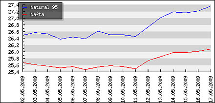 | Priemerné ceny pohonných hmôt v Českej republike k 18.05.2008 |